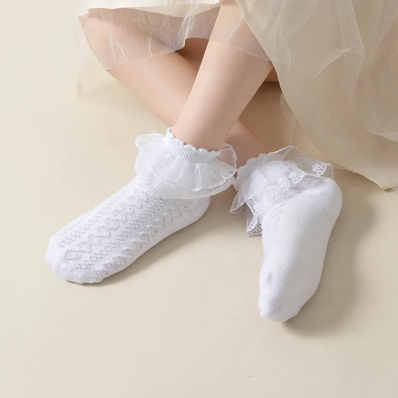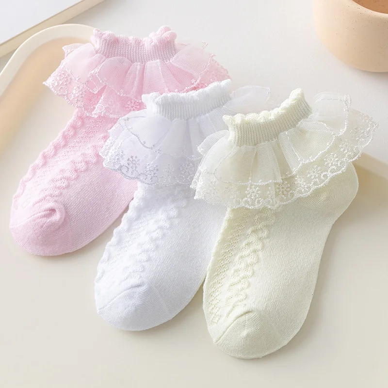Wholesale Girls' Soft Socks School Children's Lace Short White Socks Cute Baby Princess Pink Ruffle Socks to Match Sneakers